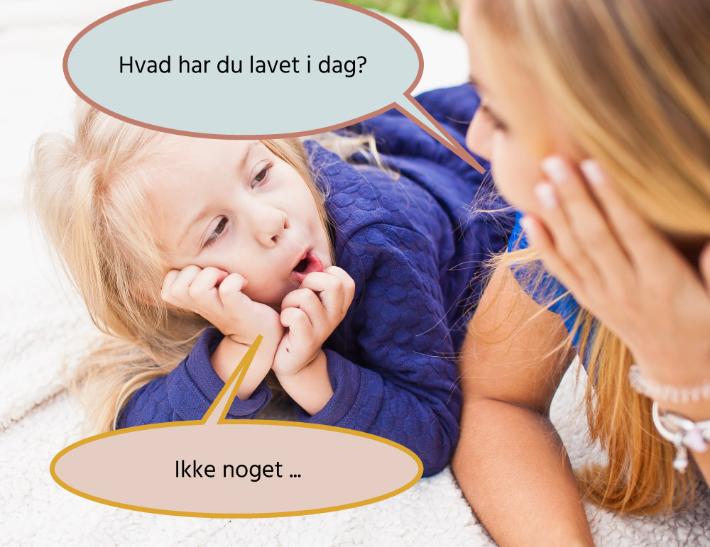 Virker det bekendt? Hver eneste dag stiller vi samme spørgsmål, når vi ser vores børn om eftermiddagen. Og så godt som hver eneste dag får vi samme svar. Eller ikke-svar, om man vil. Men hvorfor er det så svært at få børn til at tale om deres dag? Det er jo ikke sådan, at alle deres dag er fyldt med ingenting, og at de alle sammen er lige gode, så hvordan får man egentlig børnene til at fortælle?